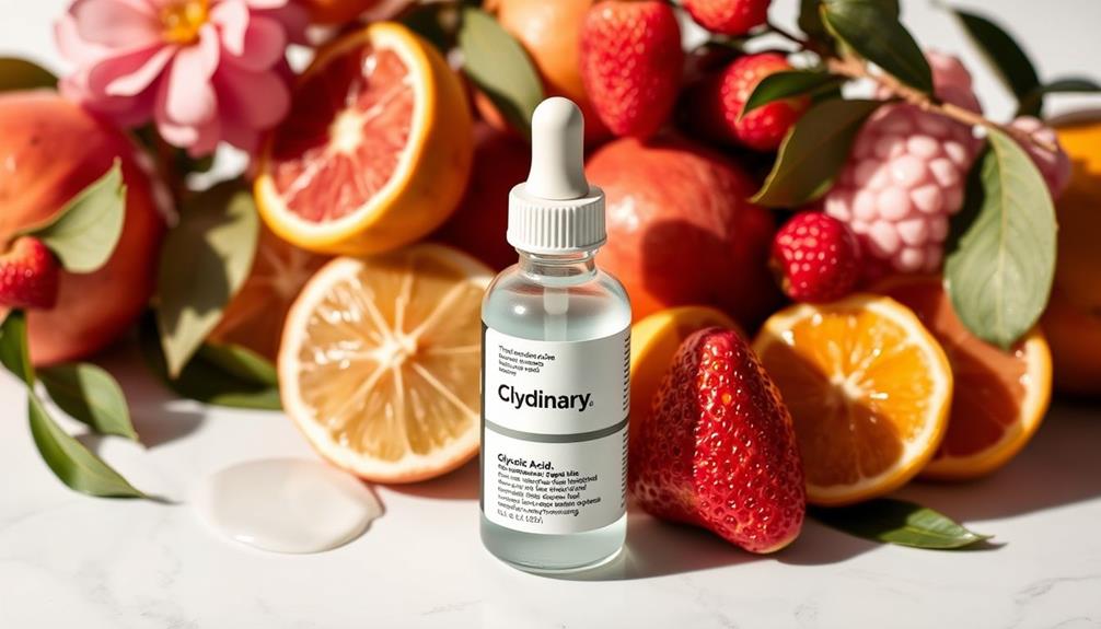 The Ordinary's Glycolic Acid is a game-changer for your skincare routine. With 7% glycolic acid, it effectively exfoliates, brightens, and promotes cell turnover, giving you a radiant complexion. It's paired with soothing ingredients like Tasmanian Pepperberry Extract and Aloe Barbadensis Leaf Water, which hydrate and reduce irritation. When used regularly, you'll notice improved skin texture and elasticity. Just remember to apply it in the evening and always wear sunscreen the next day to protect your newly refreshed skin. If you're curious about how to maximize its benefits, you'll find more insights ahead!