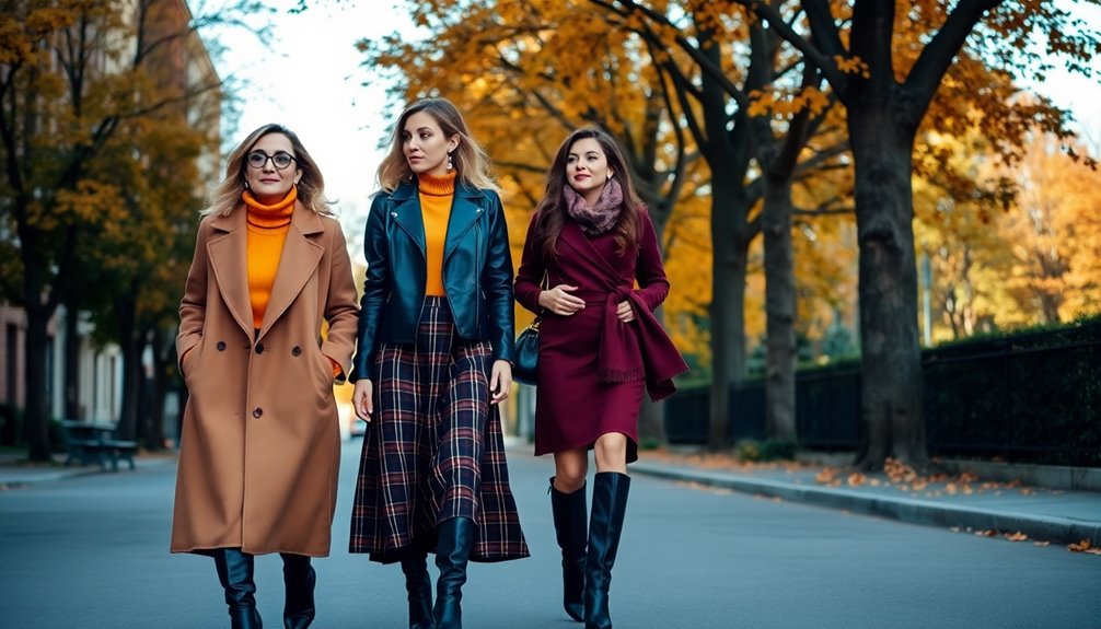 As you explore stylish knitwear combinations, don't overlook the power of bold autumn colors to elevate your looks this season. Vibrant reds, deep oranges, and rich browns can really matter in creating eye-catching outfits that stand out against the muted backdrop of fall.