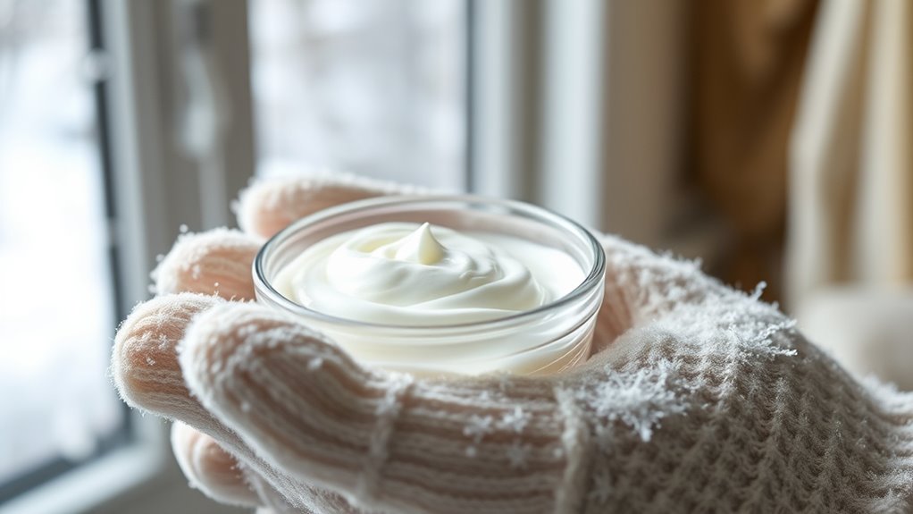 To protect your nails in cold weather, regularly moisturize your cuticles with nourishing oil and use a thick hand cream to lock in moisture. Wearing gloves outdoors helps prevent further dryness, while applying cuticle oil daily keeps your nails flexible. Drink plenty of water and consider overnight treatments with cotton gloves for extra hydration. With consistent care, your nails will stay strong and healthy despite the winter chill—keep going to find more tips.