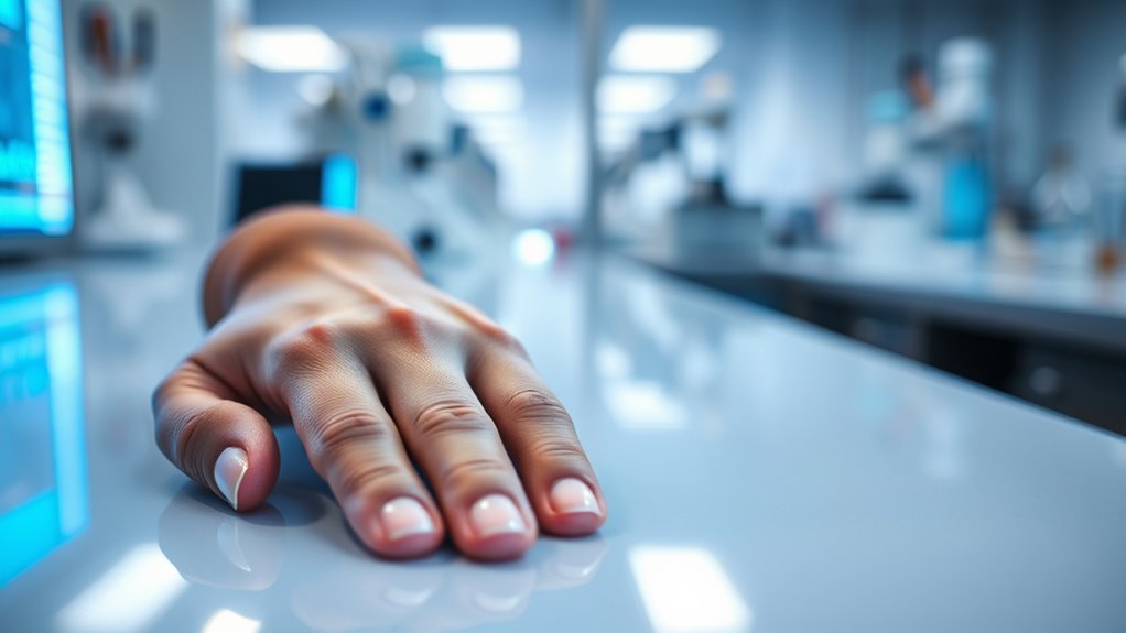 Using broad-spectrum sunscreen isn’t just for sunny days at the beach; it’s essential every day, especially if you spend hours in front of screens. Applying a sunscreen with effective ingredients ensures your skin gets a layer of defense against the oxidative stress caused by blue light. Many modern sunscreens are now formulated with antioxidants like vitamin C or E, which can neutralize free radicals generated by light exposure, further protecting your skin’s health and youthfulness. Remember, consistent application is key—reapply every two hours if you’re outdoors or exposed to screens for extended periods.
