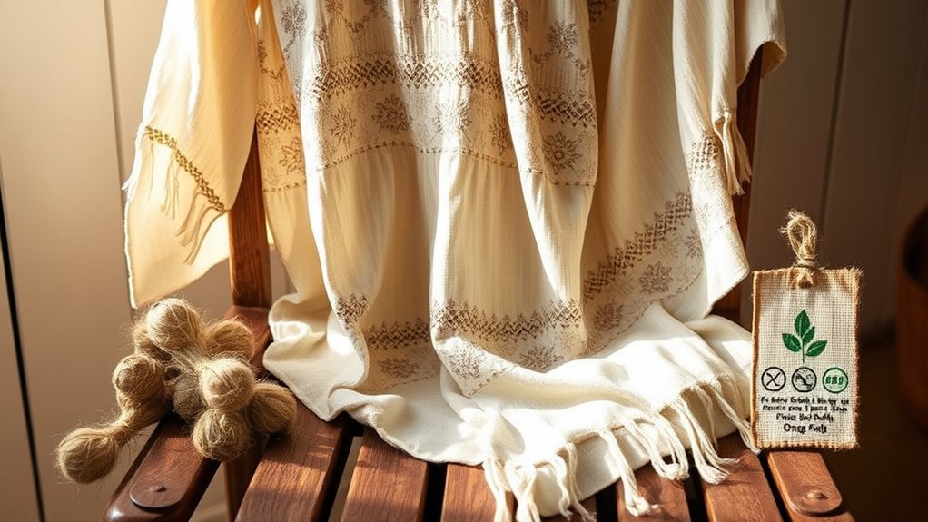 To verify if a fabric is truly ethically sourced, check for supply chain transparency and certification labels like GOTS or Fair Trade. Ask retailers or brands about their sourcing practices, and research their certifications online. These labels guarantee sustainable farming and fair labor conditions. By doing this, you can confidently choose fabrics that align with your values and support ethical practices in boho fashion.