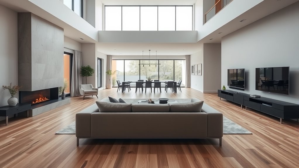 To improve flow and furniture layout, focus on creating clear pathways of 24–36 inches that guide movement smoothly through your space without obstructions. Arrange furniture to maintain unobstructed sightlines, allowing views across rooms and fostering visual harmony. Grouping related pieces helps define functional zones while preserving the open feel. If you pay attention to pathways and sightlines, you’ll create a comfortable, cohesive environment—keep exploring for tips to refine your layout even further.