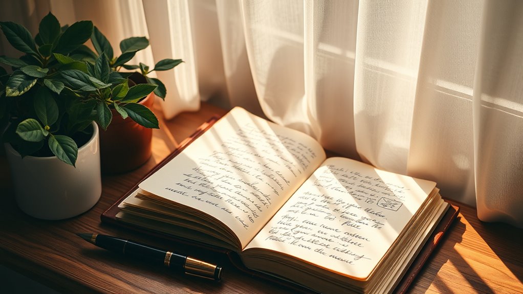 Think of your journal as a trusted friend—how often you check in matters. You should aim for daily prompts or at least a few times a week, which fosters a steady reflection frequency. This routine helps you uncover meaningful insights over time. Consistency turns small, regular reflections into a powerful tool for self-discovery, revealing patterns and growth that might stay hidden if you only write sporadically.
