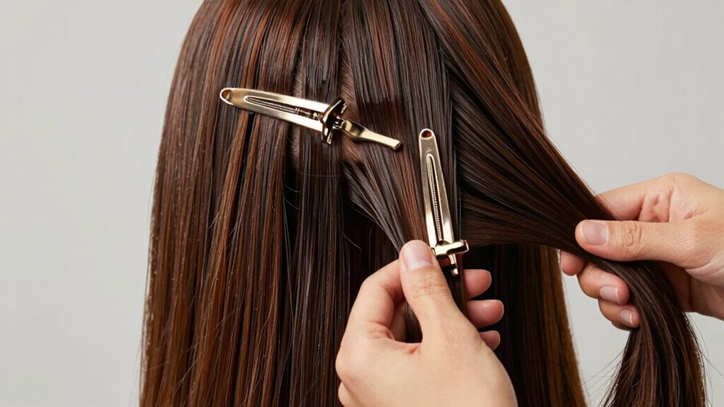 Imagine your curls bouncing perfectly or your fine hair shining like a mirror—that’s where proper sectioning makes all the difference. Curly hair benefits immensely because sectioning helps control volume and shape, preventing frizz. Fine hair also gains from sectioning, as it guarantees even heat distribution and prevents over-drying. You’ll see your hair’s true potential when you take the time to section carefully, making every strand look polished and salon-worthy.