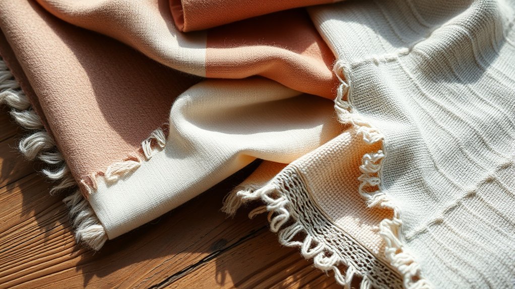 Blends combine fibers like wool and cotton or linen and polyester to balance durability, appearance, and care requirements. They often incorporate sustainable fabrics to improve their eco-friendly profile, but it’s essential to check the fabric composition and sourcing. Proper fabric care tips for blends depend on the dominant fiber but generally involve gentle washing and avoiding high heat. Choosing blends that feature sustainable fibers can help you enjoy the benefits of different textures while supporting environmentally responsible production practices. By understanding these basics and caring for your fabrics properly, you can enjoy high-quality, eco-friendly clothing that lasts longer and reduces impact on the planet.