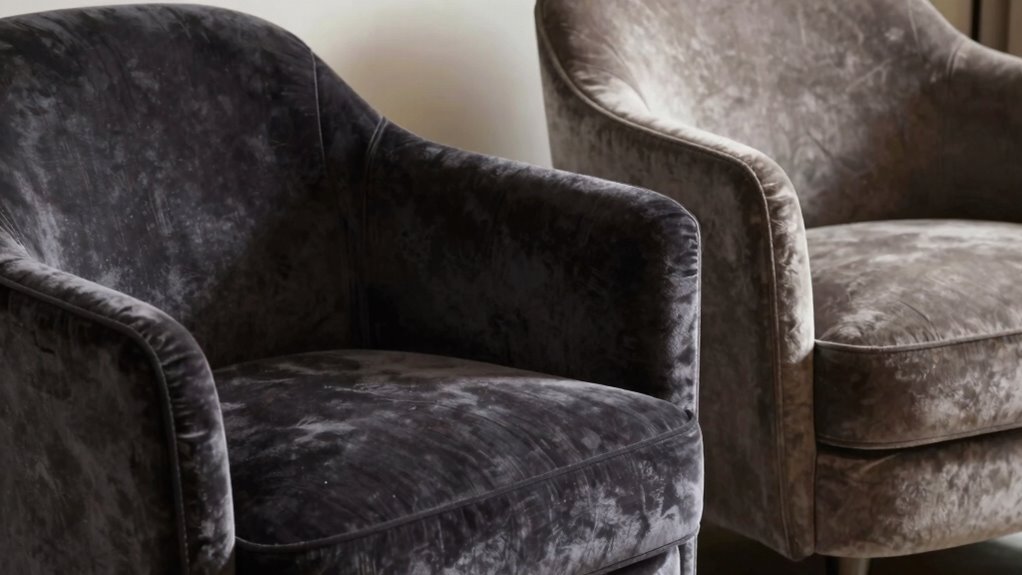 When choosing accent chairs, consider seat depth and back angle, as they affect comfort and style. A deeper seat provides more lounging space, perfect for relaxation, while a shallower one offers a more upright position, ideal for conversation. The back angle influences support—an angled back brings a casual vibe, while a straight back feels formal. Understanding these details helps you select the perfect blend of comfort and aesthetic appeal for your space. Keep exploring to master this aspect of chair design.