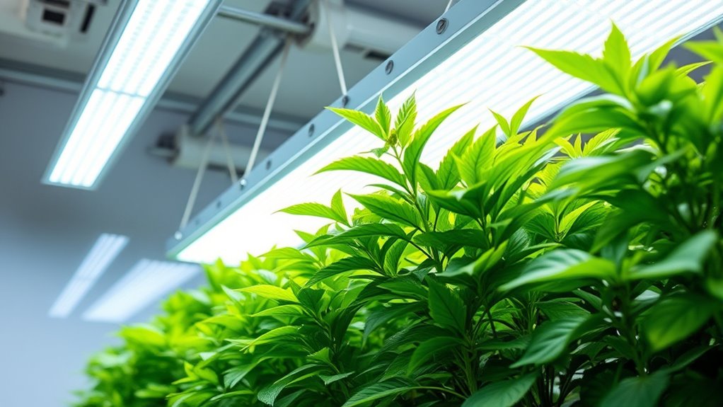 Another key aspect of upgrading to LED grow lights is their longevity. LEDs typically last for tens of thousands of hours, far exceeding traditional lights. This durability means fewer replacements, saving you money over time. Plus, their instant-on capability allows you to turn them on or off without warm-up delays, giving you more control over your lighting schedule. The combination of spectrum enhancement, heat management, and durability maximizes your return on investment, especially as your indoor garden grows and your needs evolve. You’ll spend less on energy, maintenance, and replacements, while enjoying healthier plants and higher yields.