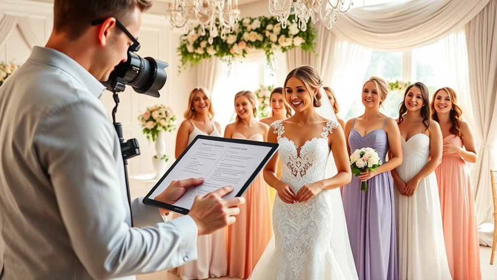 Working with bridal parties can be rewarding when you stay organized and communicate clearly. Did you know that 78% of wedding vendors say smooth teamwork leads to happier clients and better reviews? By setting clear timelines, drafting solid contracts, and fostering teamwork, you’ll guarantee every bride and her party feel confident and cared for. Stay proactive, listen well, and remember—your effort makes their special day truly unforgettable.