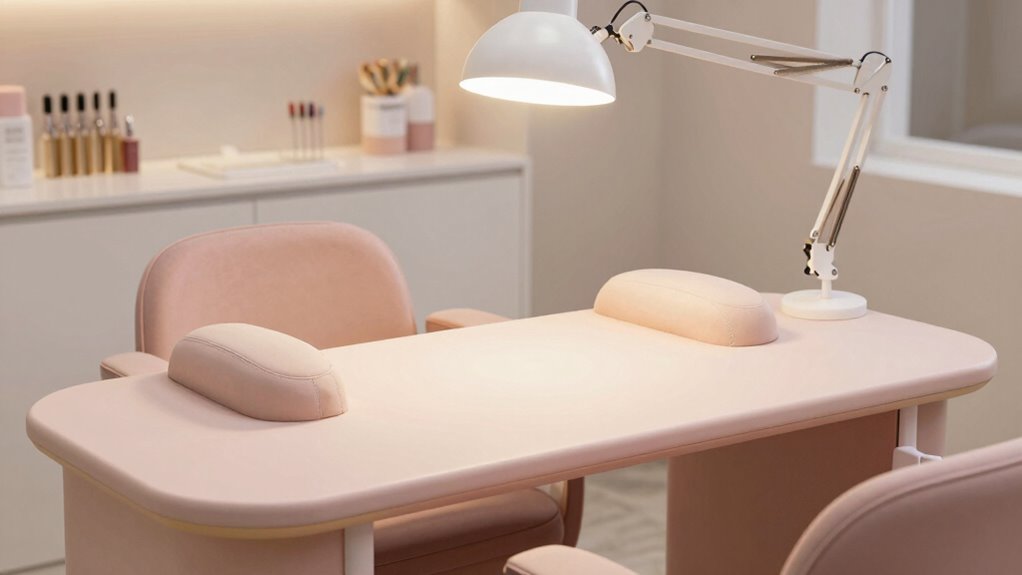 Equally important is your ergonomic chair design. Your chair should support your lower back and promote good posture, reducing fatigue and discomfort during extended periods of work. Look for a chair with adjustable height and lumbar support so you can customize it to fit your body perfectly. When your chair height aligns with your manicure table, your arms will rest comfortably at a natural angle, preventing strain on your shoulders. An ergonomic chair encourages proper positioning, which can prevent common issues like shoulder tension, neck pain, and repetitive strain injuries. Remember, the goal is to work in a way that feels natural and relaxed, so your body doesn’t have to compensate for poorly designed furniture.
