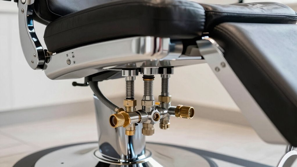 Drain installation is another critical element that often trips up even experienced technicians. A properly installed drain prevents water from pooling in the basin or under the chair, which can cause unpleasant odors, mold growth, and damage to the flooring. When installing the drain, you need to consider its placement and slope to guarantee smooth water flow toward the plumbing system. An incorrectly installed drain can lead to backups or slow drainage, creating hygiene issues and potential water damage. It’s important to use high-quality fittings and ensure the drain is securely sealed to prevent leaks. Many technicians overlook the importance of the drain’s design, but choosing a model compatible with your plumbing system and the chair’s basin makes a significant difference in long-term performance. Additionally, inspecting the drain regularly for clogs or wear helps you catch potential problems early, avoiding emergency repairs that can be costly and disruptive to your business.