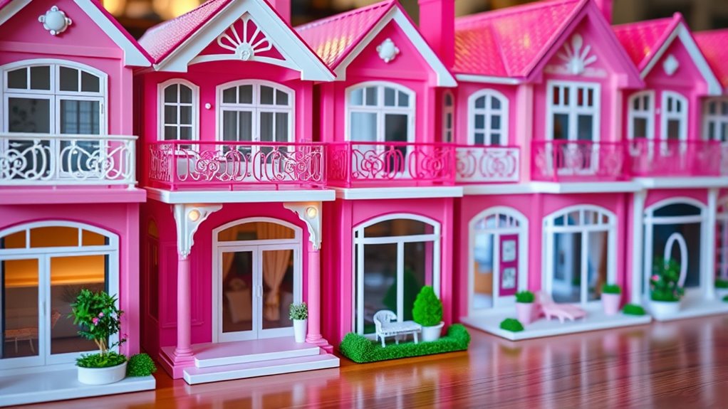 Choosing the right Barbie Dreamhouse deal in 2025 hinges on evaluating its feature set, as these elements directly impact playability and engagement. A well-designed Dreamhouse with working elevators, multiple stories, and transformable furniture offers a more versatile and interactive experience. Features like sound effects, lighting, and themed accessories add depth, making play more immersive. The inclusion of various rooms and outdoor areas encourages different role-playing scenarios, boosting creativity. Advanced features such as customizable layouts and electronic functions can keep kids entertained longer and add value. Ultimately, a thorough feature set enhances realism and keeps children engaged, making the dollhouse not just a toy but an imaginative playground that grows with them. Prioritizing these elements ensures you choose a Dreamhouse that offers lasting fun.