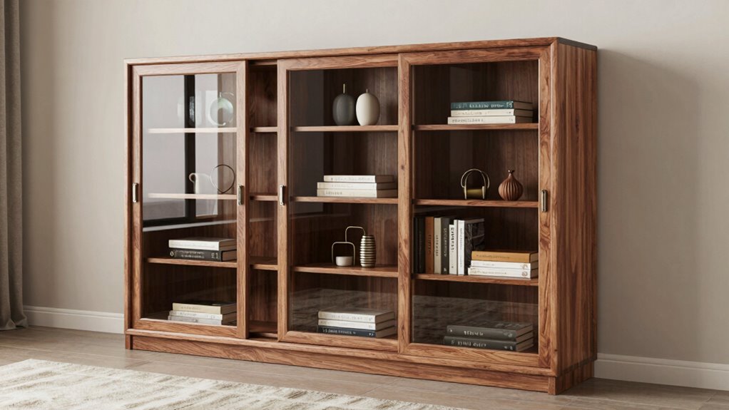 When selecting a solid wood bookcase with doors, I consider several key factors to guarantee it meets my needs. From material quality and size to style, safety, and organization, each point plays a vital role in making the right choice. Let’s explore what to keep in mind for a perfect fit.
