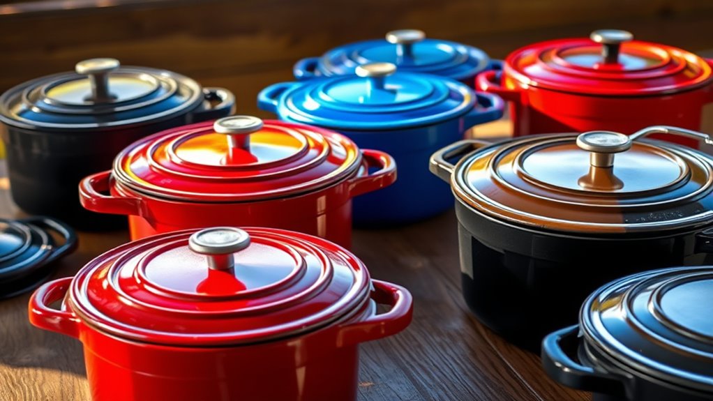 Choosing the right Dutch oven feels like finding the perfect baking partner—reliable, consistent, and ready to help you create magic. I remember my first sourdough, and how my Dutch oven transformed it into a crusty masterpiece, like a forge turning raw metal into art. With options from 4.5 to 7 quarts, you’re equipped to craft bakery-quality bread at home. Trust me, once you find your ideal pot, every loaf becomes a personal triumph.