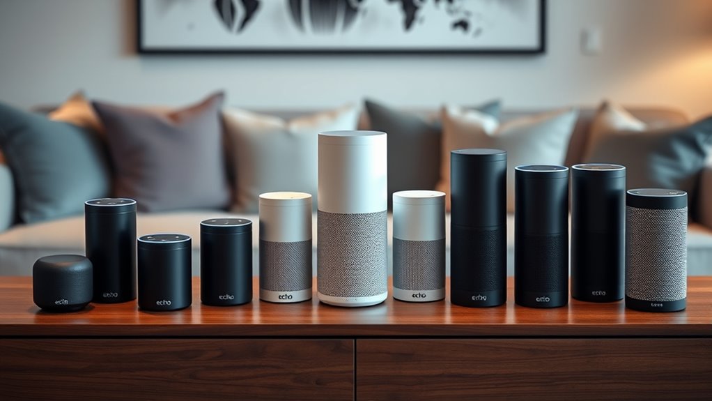 In 2025, the best Echo smart speakers with Alexa include models like the Echo Dot, Echo Pop, Echo Show 8, and Echo Spot, each tailored for different spaces and needs. They offer improved sound quality, smart home controls, vivid displays, and privacy features. Whether you want compact portability or immersive audio, there’s an option for you. Stay with me, and I’ll point out what makes each one stand out for your home setup.
