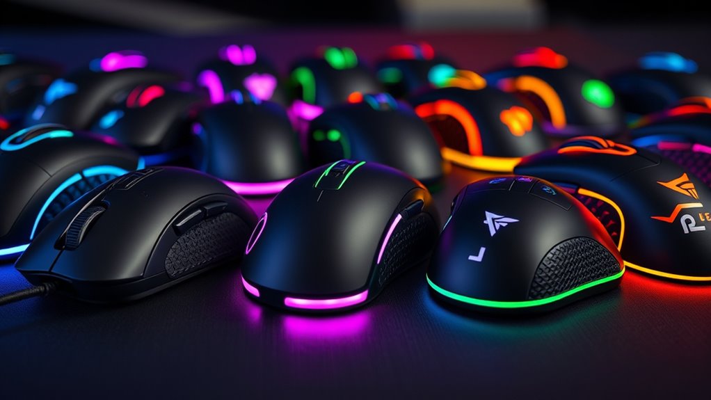 Lighting and aesthetic options play a significant role in customizing your gaming mouse to match your personal style and gaming setup. Many mice feature RGB lighting with over 16.8 million color choices, so you can create a look that suits your preferences. Dynamic effects like breathing, rainbow cycling, and reactive colors can boost immersion and coordinate with in-game themes or team colors. Some models even support synchronized lighting with other peripherals or music, offering a cohesive visual environment. You can also manage lighting zones and effects through dedicated software, giving you precise control over colors, brightness, and effects. Plus, if you prefer a more subdued setup, most mice let you turn off lighting or select static colors, helping reduce distractions and maintain a professional appearance.