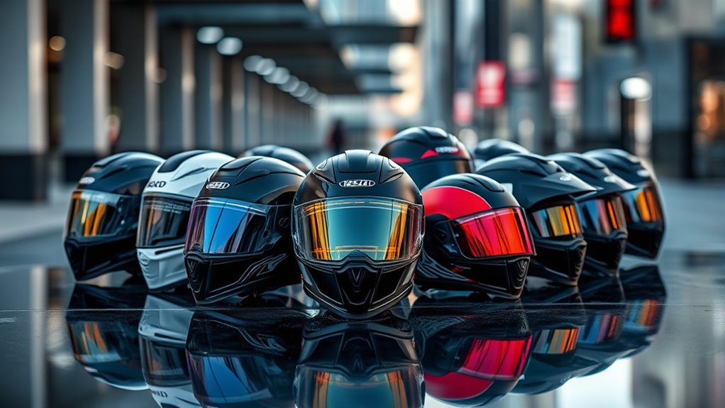 Ever wondered how to get the best value from a high-end motorcycle helmet? It’s all about balancing cost with safety, comfort, and durability. These helmets usually range from $300 to over $1,000, reflecting advanced features and premium materials. Choosing a helmet with certifications like DOT and ECE guarantees you’re getting a product tested for safety without overspending. The best value helmets combine sturdy construction, innovative features like integrated communication systems, and long-lasting materials that justify higher prices. Price differences often come down to added benefits such as better ventilation, lighter weight, or superior visors, which enhance your riding experience. When considering price and value, also look at the helmet’s longevity, warranty, and reviews—these help ensure your investment translates into real protection and satisfaction.