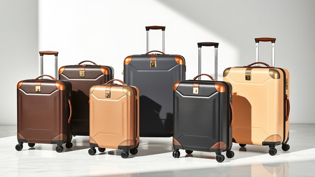 When choosing a high-end luggage set, durability and style really matter—after all, studies show that travelers spend an average of 4 hours packing! Investing in a quality set guarantees your belongings stay safe and your trips more enjoyable. Remember, a good luggage set can last up to 10 years, making it a smart, long-term investment. So, pick one that combines luxury and durability, and your journeys will always start on the right foot.