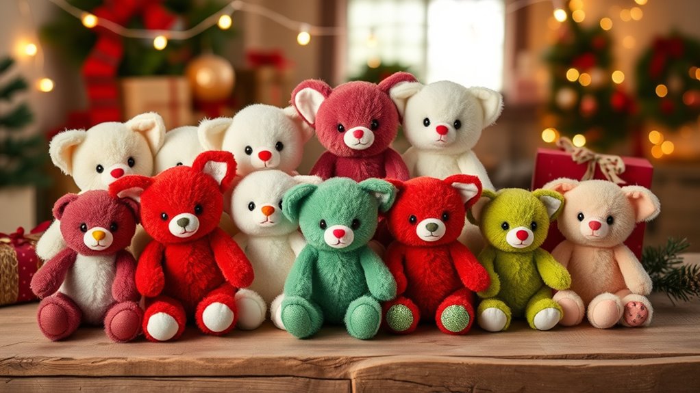 Choosing the right Jellycat Christmas Collection item for a specific age group requires careful attention to size, design, and safety features. For babies, I look for small, chew-safe plush toys that are gentle and soft, with simple features to avoid choking hazards. It’s crucial to check safety certifications like EN71, ensuring the toy is non-toxic and free of small parts that could be dangerous. For older children, I consider more detailed characters with intricate designs that can be appreciated and handled roughly. Durability is key, so I review the construction quality, including sturdy stitching and durable materials that can withstand active play. Finally, I verify the recommended age range on the product description or safety labels to make sure it’s appropriate for the recipient’s developmental stage.