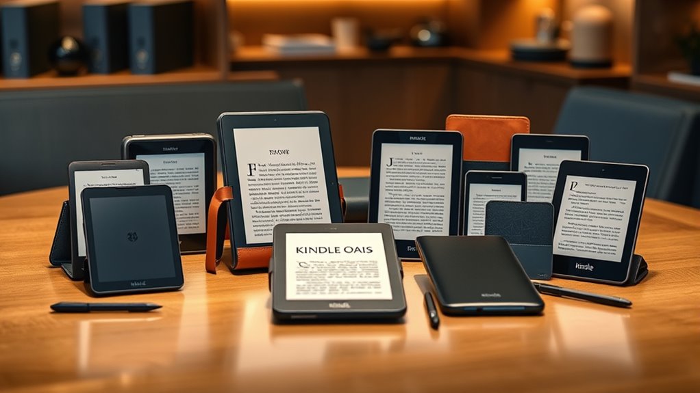 If you’re exploring the 15 best Kindle Oasis alternatives in 2025, I’ve got you covered. These options match or surpass Oasis features like large, high-resolution screens, waterproofing, adjustable warm light, and ergonomic designs. From waterproof fabric covers to impact-resistant cases and premium 7-inch displays, there’s something for every reader’s preference. Curious about which device suits you best? Keep going, and I’ll help you discover the perfect match for your reading needs.