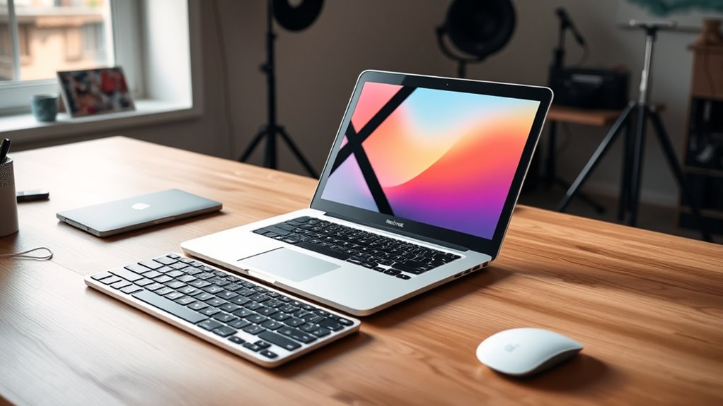 Yes, the new MacBook Air is compatible with most existing Apple accessories and ecosystems. I’ve found that my MagSafe chargers, AirPods, and external displays work seamlessly. Apple maintains good ecosystem integration, so I can easily connect peripherals, sync with iCloud, and use Continuity features. Just make sure your accessories are updated or compatible with the latest standards, and you’ll enjoy smooth, hassle-free integration across your devices.