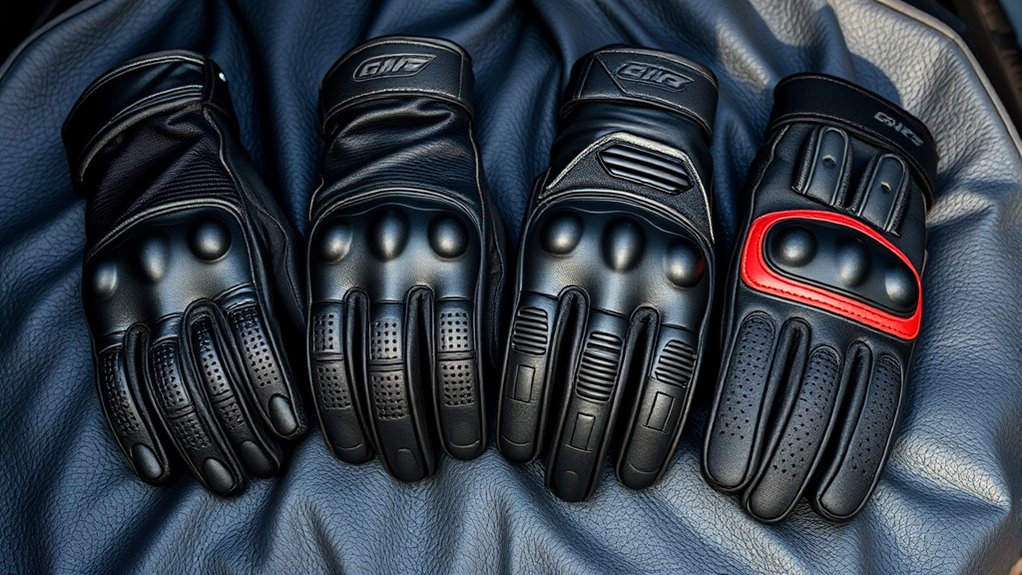 Choosing motorcycle gloves that can withstand the demands of riding means paying close attention to their material durability and strength. I look for gloves made from tough materials like leather, Kevlar, or reinforced polyester, which resist tearing and abrasion during falls or impacts. The strength of the fabric directly affects how well the gloves protect against cuts, punctures, and abrasions in an accident. High-quality fabrics are often tested for tensile strength and tear resistance, ensuring they can handle the rigors of riding and crashes. Reinforced areas, such as knuckles, palms, and fingertips, are layered with extra protective materials to boost durability in high-wear zones. Construction features like double stitching and impact-resistant shells also play a vital role in enhancing overall durability and safety.