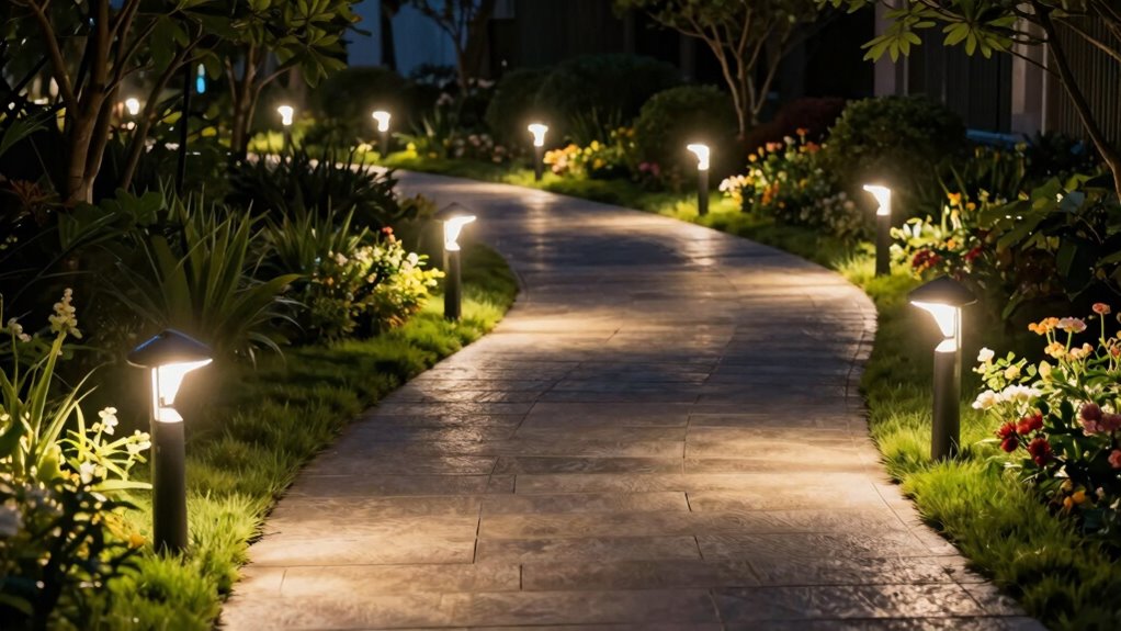 If you’re looking for the 15 best outdoor solar pathway lights for 2026, I’ve found a great mix of durable, stylish options like waterproof garden decor, metal and glass designs, and various brightness and color modes. These lights are weather-resistant, easy to install, and eco-friendly, ensuring they last through every season. To find the perfect fit for your outdoor space and discover detailed features, keep exploring – I’ll share all you need to know.