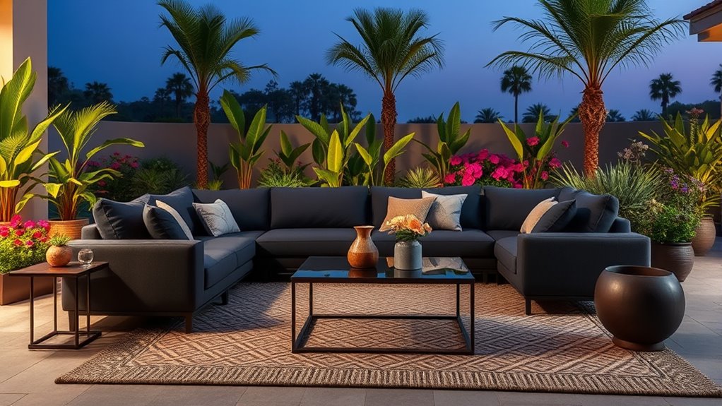 - Weather-resistant materials including PE rattan, reinforced steel frames, and water-resistant cushions for easy maintenance
