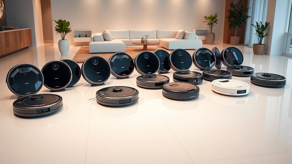 If you’re looking for the 15 best robotic vacuums of 2025, I’ve found top models that blend powerful cleaning, smart navigation, and affordability. From slim designs perfect for tight spaces to high-end options with advanced mapping and self-emptying bases, there’s a device for every need. Whether you want pet hair removal, multi-floor cleaning, or multi-functionality like mopping, these picks cover it all. Keep going to discover which one fits your home best.