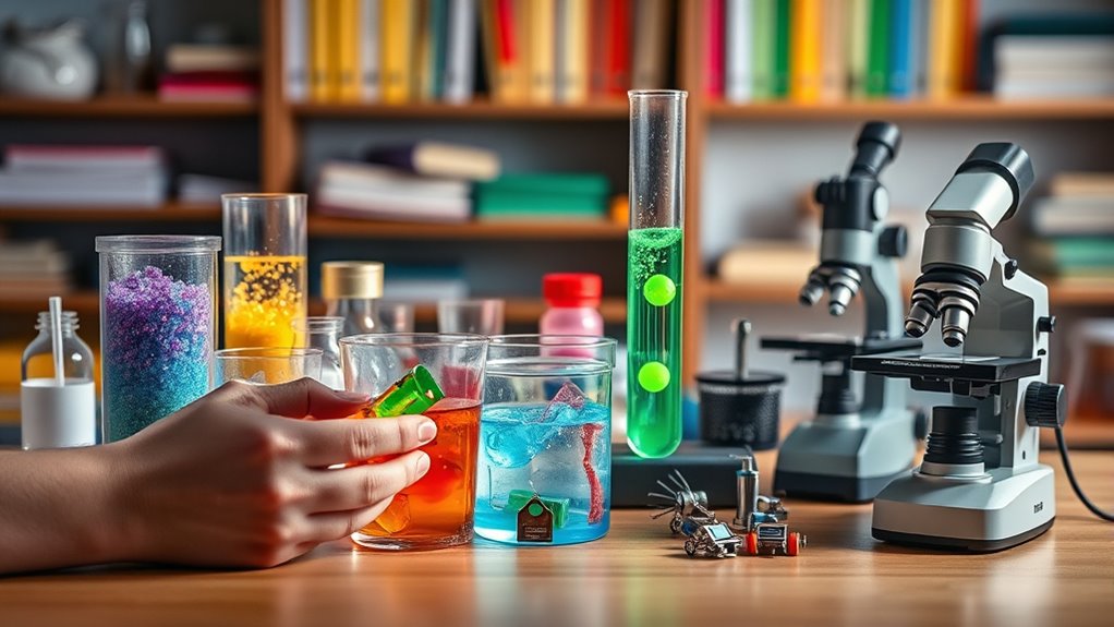 Looking for the best science kits to spark curiosity and creativity in teenagers? I’ve found top options like the Playz Mega Kaboom! for explosive experiments, the National Geographic Mega Science Lab, and STEM-focused kits like robotics, chemistry, and engineering projects. These kits are age-appropriate, safe, and engaging, helping teens explore various scientific principles. Keep exploring, and you’ll discover even more exciting kits that match different interests and skill levels.