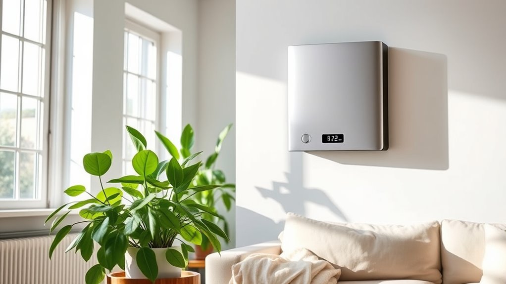 You’ll find that most whole-house air purifiers operate whisper-quiet, making it easy to forget they’re even running. During daily use, I notice only a gentle hum, which is barely noticeable, even in quiet rooms. Modern models are designed with sound-dampening features, so you can enjoy cleaner air without any disruptive noise. It’s a small comfort that really enhances the overall experience of breathing easier at home.